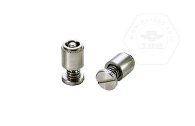 手緊螺釘?shù)膲恒T套具有壓花齒,壓裝于于機(jī)箱或薄鈑孔內(nèi)(:薄板的鉆孔徑相對(duì)應(yīng)彈簧螺釘?shù)膲糊X徑有一定要求的,形成一個(gè)外露的彈簧螺釘,用手?jǐn)Q另一端(即手?jǐn)Q端).因其里面固定有彈簧,螺釘相對(duì)于薄板的另一端來回進(jìn)出。