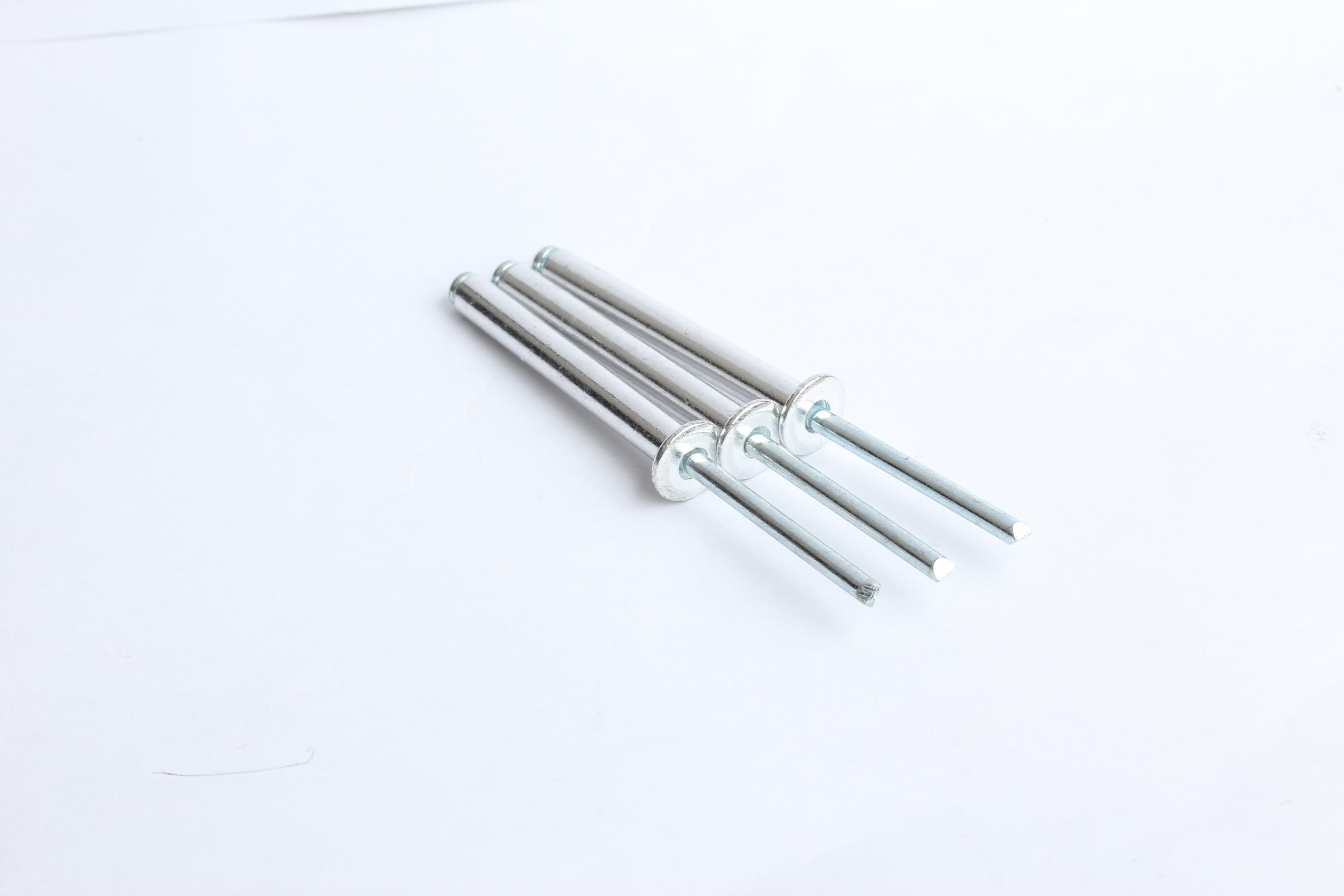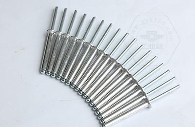 鉚接時,鉚釘釘芯由專用鉚槍拉動,使鉚體膨脹,起到鉚接作用。這類鉚釘特別適用于不便采用普通鉚釘(須從兩面進(jìn)行鉚接)的鉚接場合。故廣泛用于建筑、汽車、船舶、飛機(jī)、電器、家具等產(chǎn)品上。