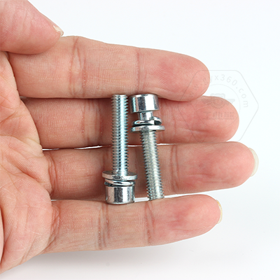 • 工業(yè)熊碳鋼8.8級藍白鋅內(nèi)六角圓柱頭帶平彈墊組合螺釘(無滾花)DIN912平彈墊三組合