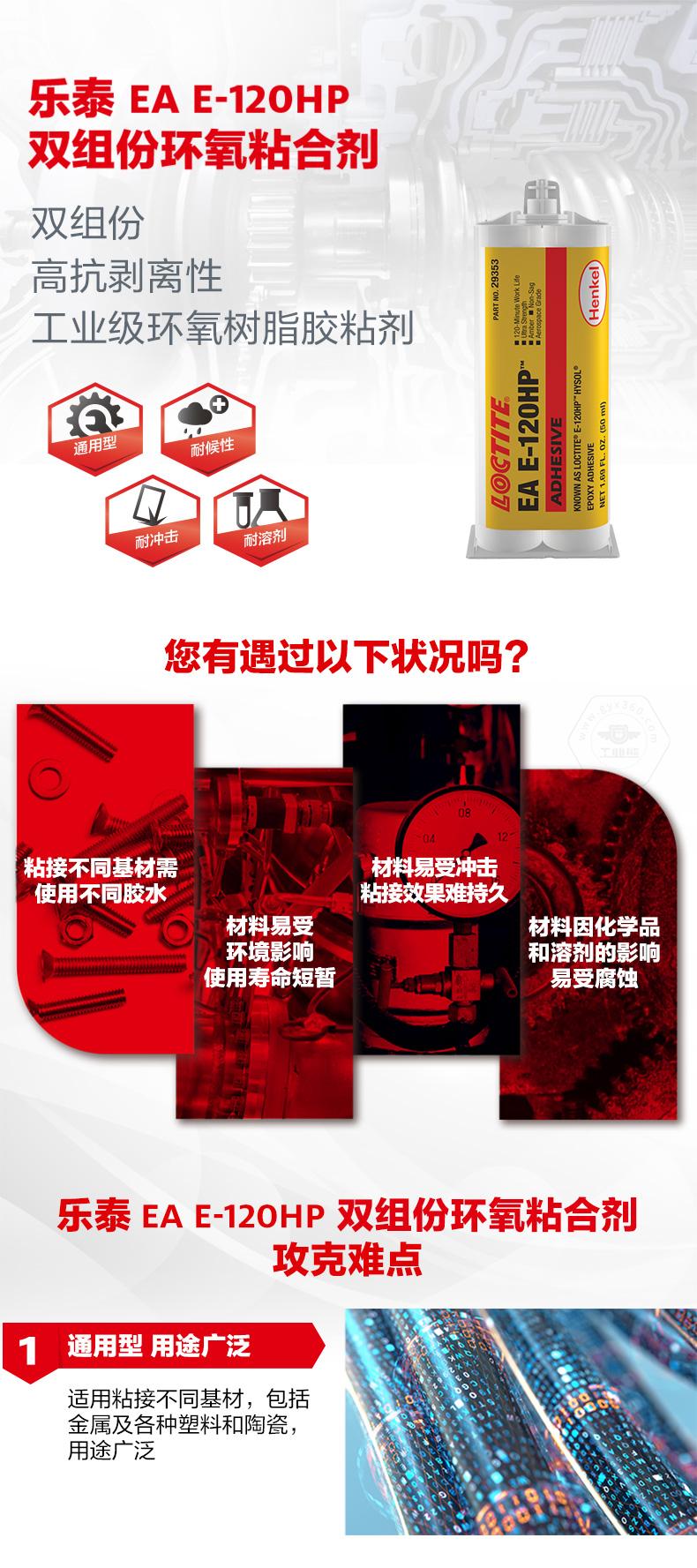 樂(lè)泰EA E-120HP雙組份環(huán)氧粘合劑是一款雙組份、通用型、具有高抗剝離性的工業(yè)級(jí)環(huán)氧樹脂膠粘劑。樂(lè)泰EA E-120HP雙組份環(huán)氧粘合劑具備耐候性、耐沖擊和耐溶劑性能,可用于鋁、鋼和其他金屬,以及各種塑料和陶瓷的粘接。樂(lè)泰EA E-120HP雙組份環(huán)氧粘合劑適合需要高沖擊力和高剝離強(qiáng)度的低應(yīng)力、一般工業(yè)應(yīng)用。
