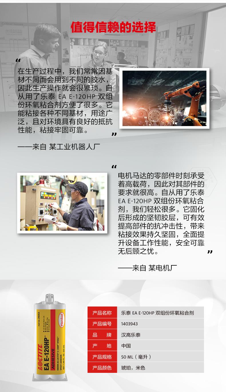 樂(lè)泰EA E-120HP雙組份環(huán)氧粘合劑是一款雙組份、通用型、具有高抗剝離性的工業(yè)級(jí)環(huán)氧樹脂膠粘劑。樂(lè)泰EA E-120HP雙組份環(huán)氧粘合劑具備耐候性、耐沖擊和耐溶劑性能,可用于鋁、鋼和其他金屬,以及各種塑料和陶瓷的粘接。樂(lè)泰EA E-120HP雙組份環(huán)氧粘合劑適合需要高沖擊力和高剝離強(qiáng)度的低應(yīng)力、一般工業(yè)應(yīng)用。